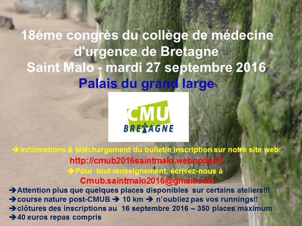 • une question? une zone d'ombre? n'hésitez pas à vous référer à notre rubrique "Informations & Liens Utiles" (où se déroule le congrés? comment s'y rendre? où loger sur St Malo? où déjeuner? etc, etc...)